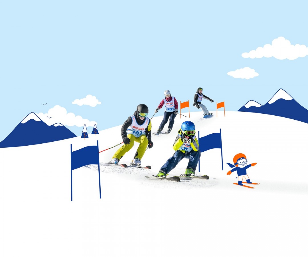 Lo svolgimento è semplice: al Migros Ski Day affronti con la tua famiglia uno slalom gigante di livello facile. Parti accanto ai tuoi famigliari e percorri assieme tutta la pista. Il tempo viene cronometrato dalla partenza del primo membro della famiglia fino a quando l’ultimo taglia il traguardo.